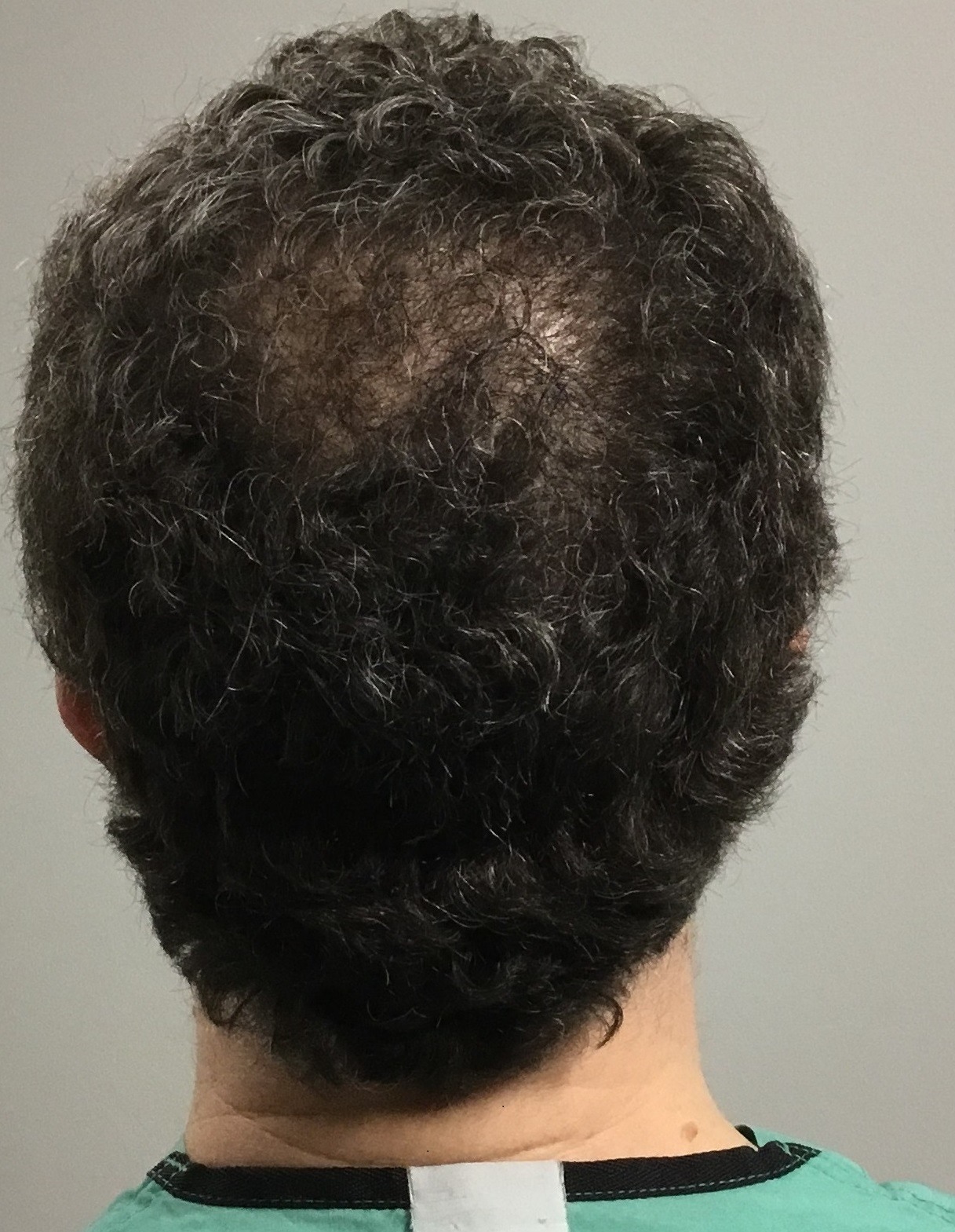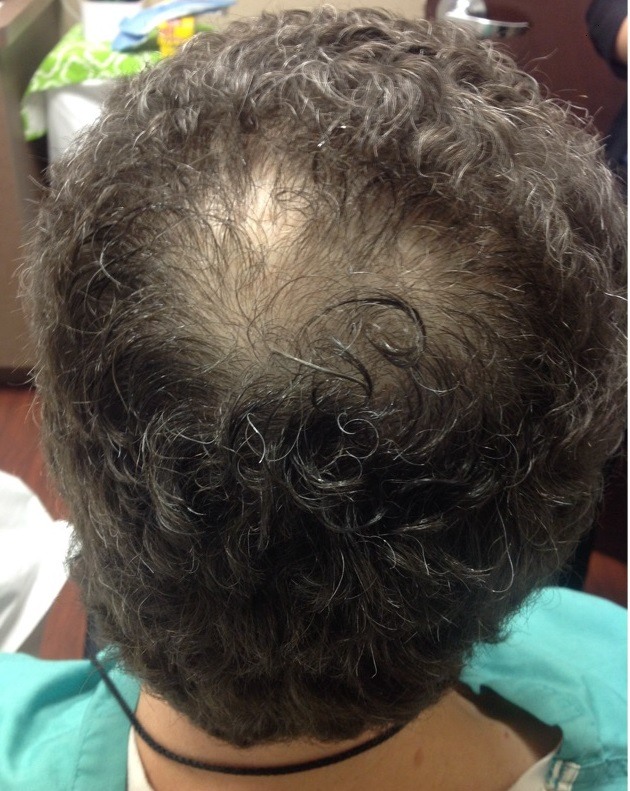 Dr. Singer developed male pattern hair loss starting at 28 years of age. He started Propecia (i.e. finasteride) 1 mg per day. This seemed to prevent the development of progressive hair loss over the next 10 years. However, by the time he turned 40, he noticed progressive thinning along the vertex of his scalp. He then added Rogaine foam twice daily which produced some improvement. But he desired further hair growth in that area. That’s when he started PRP in 2019. The results shown are after four treatments.